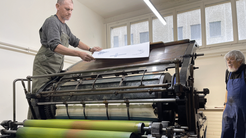 Zu diesem Zweck sind pro Monat zwei Ateliertage für euch reserviert, um das materielle und immaterielle Kulturerbe rund um den Steindruck und besonders um die Litho-Schnellpresse «Johannisberg 1911» zu erfahren.
